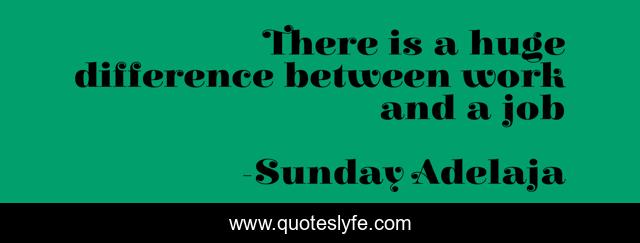This page presents the quote "There is a huge difference between work and a job". Author of this quote is Sunday Adelaja. This quote is about life, blessing, finance, money, work, job, joblessness, purpose, time,.