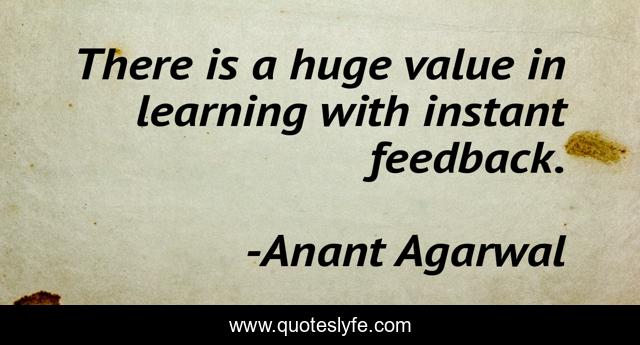 This page presents the quote "There is a huge value in learning with instant feedback.". Author of this quote is Anant Agarwal. This quote is about instant, feedback, value,.