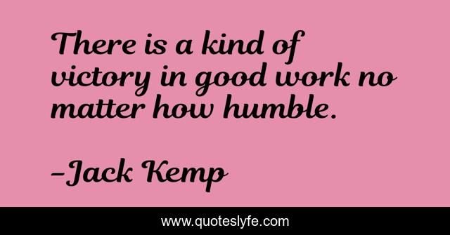 This page presents the quote "There is a kind of victory in good work no matter how humble.". Author of this quote is Jack Kemp. .