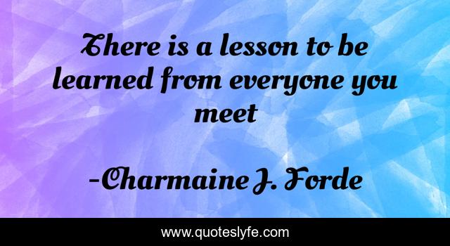 This page presents the quote "There is a lesson to be learned from everyone you meet". Author of this quote is Charmaine J. Forde. This quote is about meet, lesson, everyone, learn,.