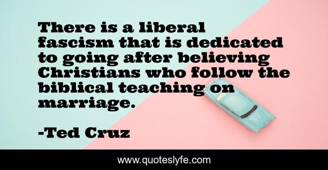 This page presents the quote "There is a liberal fascism that is dedicated to going after believing Christians who follow the biblical teaching on marriage.". Author of this quote is Ted Cruz. This quote is about follow, liberal, believing,.