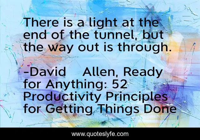 This page presents the quote "There is a light at the end of the tunnel, but the way out is through.". Author of this quote is David Allen, Ready for Anything: 52 Productivity Principles for Getting Things Done. .