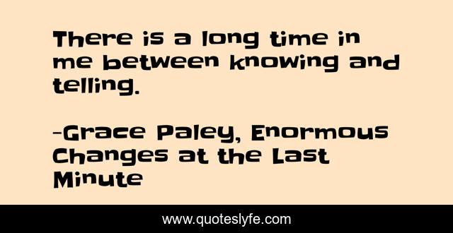 This page presents the quote "There is a long time in me between knowing and telling.". Author of this quote is Grace Paley, Enormous Changes at the Last Minute. .