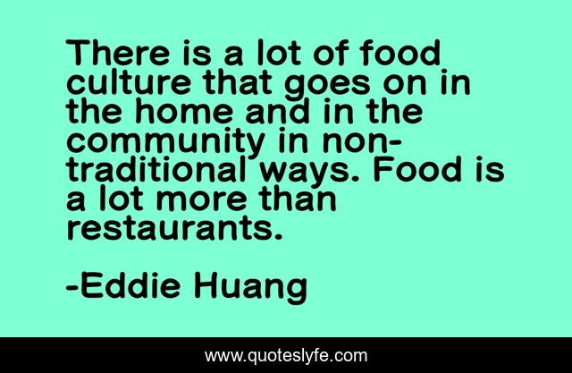 This page presents the quote "There is a lot of food culture that goes on in the home and in the community in non-traditional ways. Food is a lot more than restaurants.". Author of this quote is Eddie Huang. This quote is about home, community, culture,.