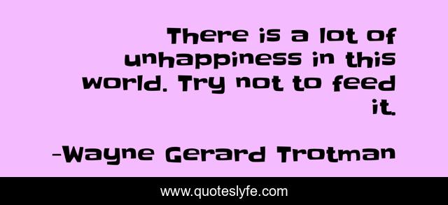 This page presents the quote "There is a lot of unhappiness in this world. Try not to feed it.". Author of this quote is Wayne Gerard Trotman. This quote is about life-philosophy, positive-attitude, life-and-living, words-of-wisdom, unhappiness,.