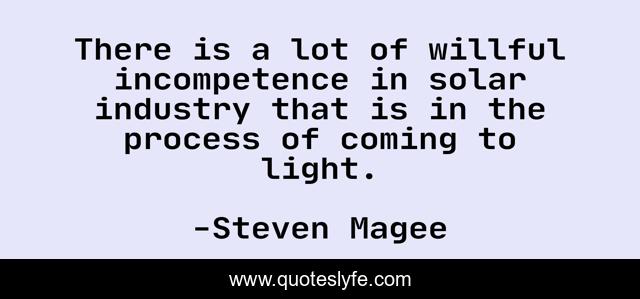 This page presents the quote "There is a lot of willful incompetence in solar industry that is in the process of coming to light.". Author of this quote is Steven Magee. This quote is about solar, process, light, incompetence, solar-systems, solar-power, industry, lot, willful,.