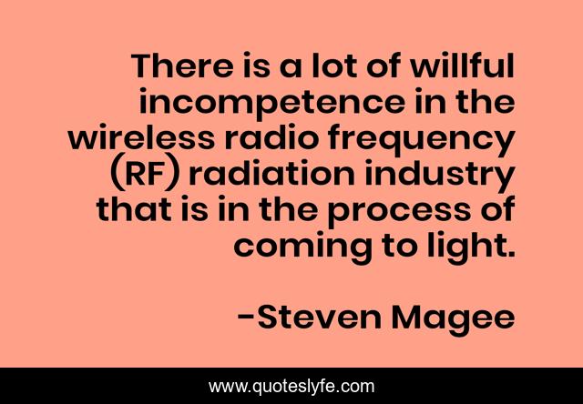This page presents the quote "There is a lot of willful incompetence in the wireless radio frequency (RF) radiation industry that is in the process of coming to light.". Author of this quote is Steven Magee. This quote is about radio-waves, radio-wave-sickness, radiochemistry, process, radiation-effects, incompetence, coming, radiation, wireless,.