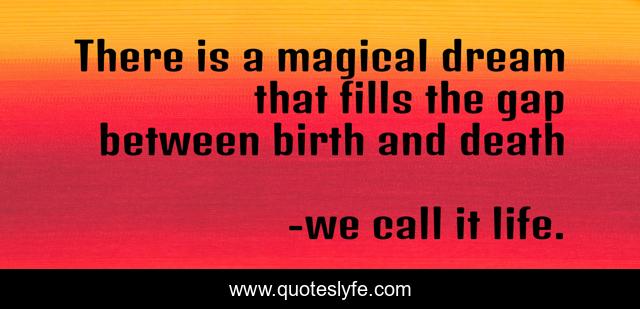 This page presents the quote "There is a magical dream that fills the gap between birth and death". Author of this quote is we call it life.. .