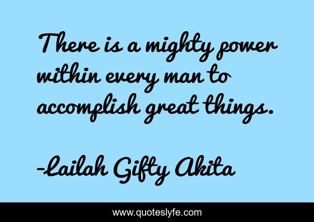 This page presents the quote "There is a mighty power within every man to accomplish great things.". Author of this quote is Lailah Gifty Akita. This quote is about inner-strength, inner-voice, mighty, inner-life,.
