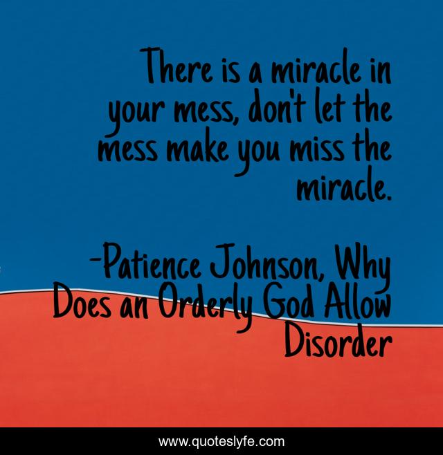 "Patience Johnson, Why Does an Orderly God Allow Disorder Quotes." Quoteslyfe.com, 2025. Sat. 06 Dec. 2025. <https://www.quoteslyfe.com/quote/There-is-a-miracle-in-your-mess-20558>.