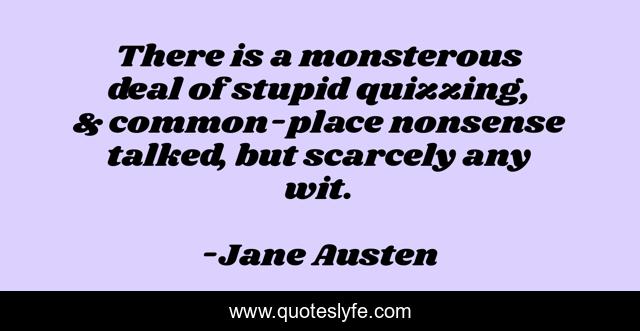 This page presents the quote "There is a monsterous deal of stupid quizzing, & common-place nonsense talked, but scarcely any wit.". Author of this quote is Jane Austen. This quote is about humor, wit, jane-austen,.