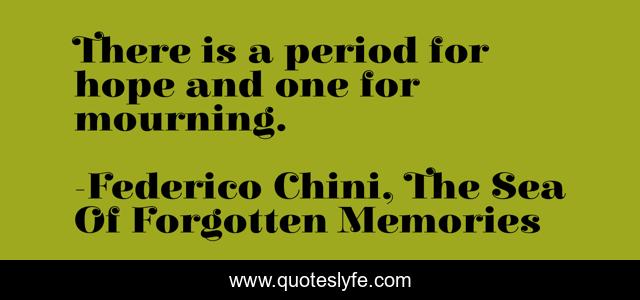 This page presents the quote "There is a period for hope and one for mourning.". Author of this quote is Federico Chini, The Sea Of Forgotten Memories. This quote is about hope, mourning,.