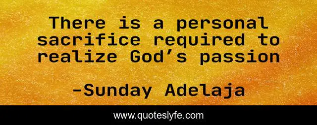 This page presents the quote "There is a personal sacrifice required to realize God’s passion". Author of this quote is Sunday Adelaja. This quote is about personal, sacrifice, realitye,.