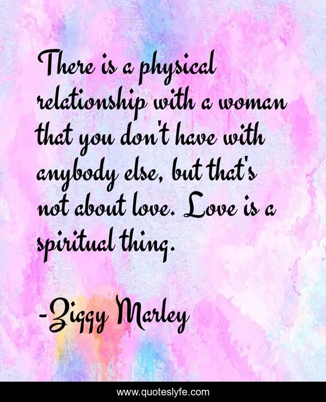 This page presents the quote "There is a physical relationship with a woman that you don't have with anybody else, but that's not about love. Love is a spiritual thing.". Author of this quote is Ziggy Marley. This quote is about love, relationship, affection,.