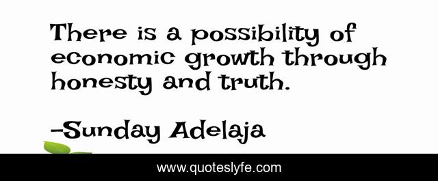 This page presents the quote "There is a possibility of economic growth through honesty and truth.". Author of this quote is Sunday Adelaja. This quote is about possibility, honesty, truth,.