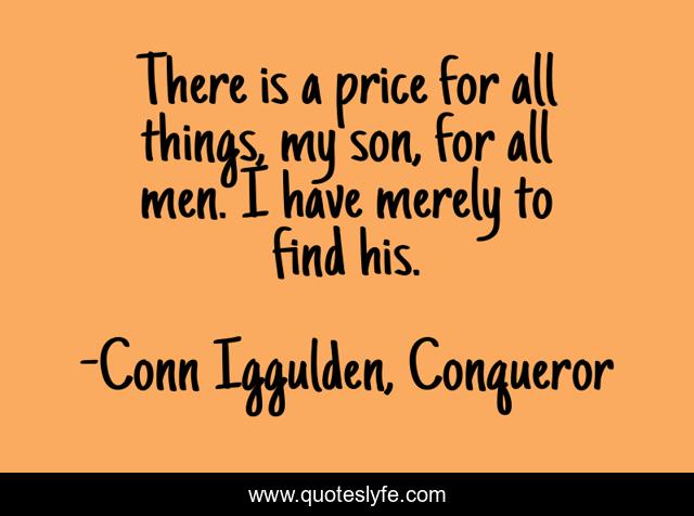This page presents the quote "There is a price for all things, my son, for all men. I have merely to find his.". Author of this quote is Conn Iggulden, Conqueror. This quote is about things, price, men, son, merely, find,.