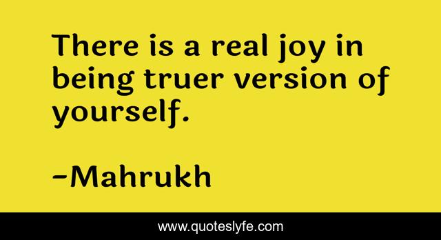 This page presents the quote "There is a real joy in being truer version of yourself.". Author of this quote is Mahrukh. This quote is about joy, self, love, identity, affection,.