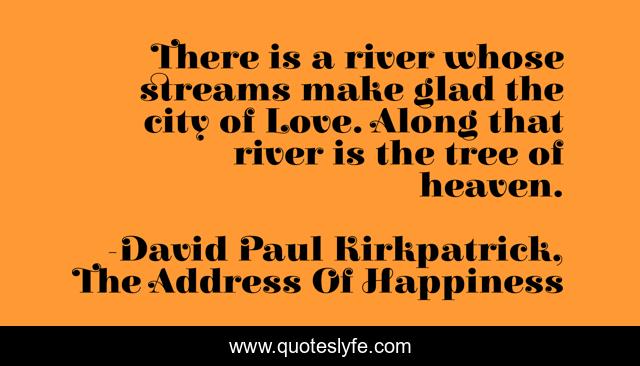 This page presents the quote "There is a river whose streams make glad the city of Love. Along that river is the tree of heaven.". Author of this quote is David Paul Kirkpatrick, The Address Of Happiness. This quote is about tree-of-life, heaven, love, affection,.