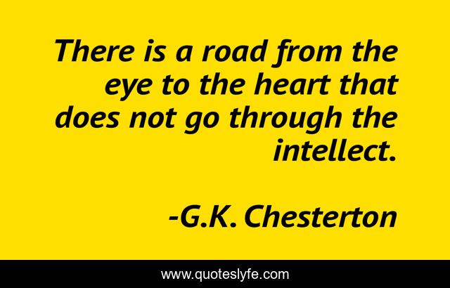 This page presents the quote "There is a road from the eye to the heart that does not go through the intellect.". Author of this quote is G.K. Chesterton. This quote is about enthusiasm, inspirational,.