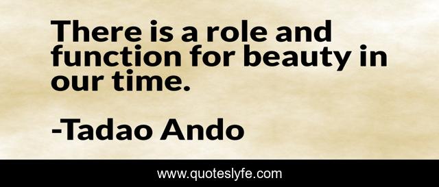 This page presents the quote "There is a role and function for beauty in our time.". Author of this quote is Tadao Ando. This quote is about our time, role, time,.