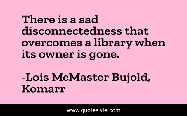 This page presents the quote "There is a sad disconnectedness that overcomes a library when its owner is gone.". Author of this quote is Lois McMaster Bujold, Komarr. This quote is about libraries, books, philosophy,.