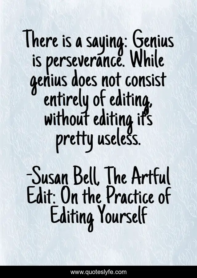 "Susan Bell, The Artful Edit: On the Practice of Editing Yourself Quotes." Quoteslyfe.com, 2025. Fri. 05 Dec. 2025. <https://www.quoteslyfe.com/quote/There-is-a-saying-Genius-is-perseverance-195588>.