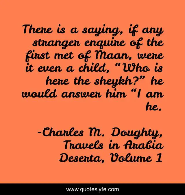 "Charles M. Doughty, Travels in Arabia Deserta, Volume 1 Quotes." Quoteslyfe.com, 2025. Fri. 05 Dec. 2025. <https://www.quoteslyfe.com/quote/There-is-a-saying-if-any-stranger-137630>.