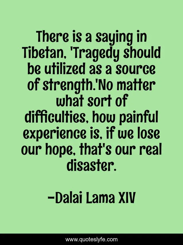 There is a saying in Tibetan, 'Tragedy should be utilized as a source of strength.'No matter what sort of difficulties, how painful experience is, if we lose our hope, that's our real disaster.