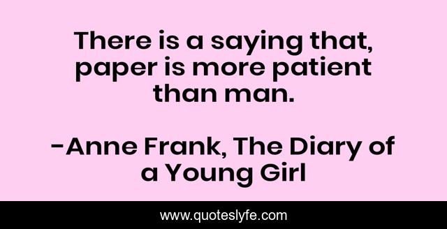 "Anne Frank, The Diary of a Young Girl Quotes." Quoteslyfe.com, 2025. Fri. 05 Dec. 2025. <https://www.quoteslyfe.com/quote/There-is-a-saying-that-paper-is-245289>.