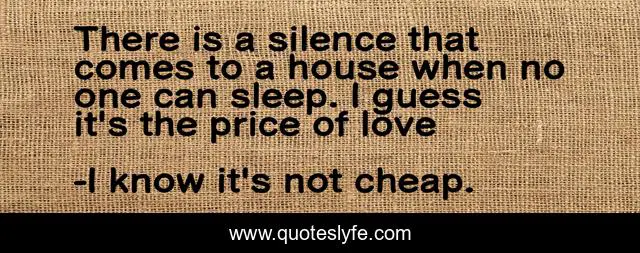 This page presents the quote "There is a silence that comes to a house when no one can sleep. I guess it's the price of love". Author of this quote is I know it's not cheap.. .