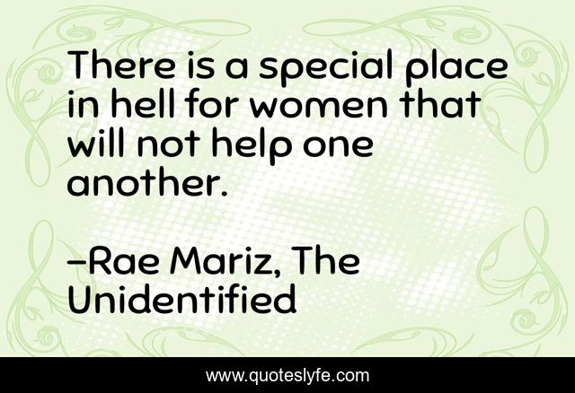 This page presents the quote "There is a special place in hell for women that will not help one another.". Author of this quote is Rae Mariz, The Unidentified. .
