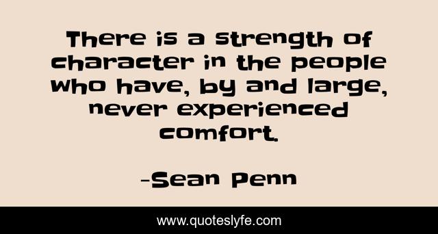 This page presents the quote "There is a strength of character in the people who have, by and large, never experienced comfort.". Author of this quote is Sean Penn. This quote is about comfort, character, people,.
