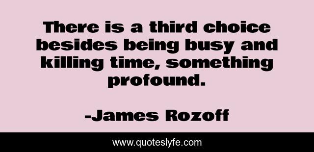 This page presents the quote "There is a third choice besides being busy and killing time, something profound.". Author of this quote is James Rozoff. This quote is about quietude, reflection,.