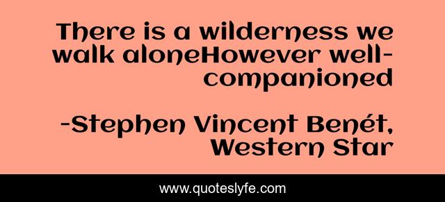 "Stephen Vincent Benét, Western Star Quotes." Quoteslyfe.com, 2025. Mon. 08 Dec. 2025. <https://www.quoteslyfe.com/quote/There-is-a-wilderness-we-walk-aloneHowever-182036>.