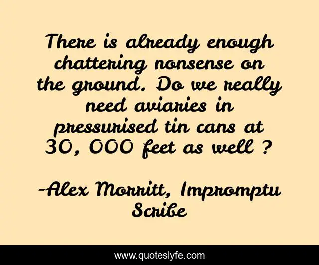 "Alex Morritt, Impromptu Scribe Quotes." Quoteslyfe.com, 2025. Fri. 05 Dec. 2025. <https://www.quoteslyfe.com/quote/There-is-already-enough-chattering-nonsense-on-232686>.