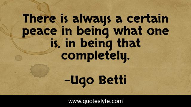 This page presents the quote "There is always a certain peace in being what one is, in being that completely.". Author of this quote is Ugo Betti. This quote is about being, always, certain,.