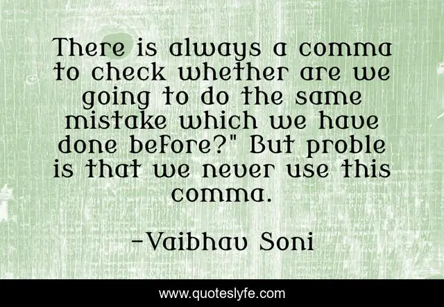 This page presents the quote "There is always a comma to check whether are we going to do the same mistake which we have done before?" But proble is that we never use this comma.". Author of this quote is Vaibhav Soni. .