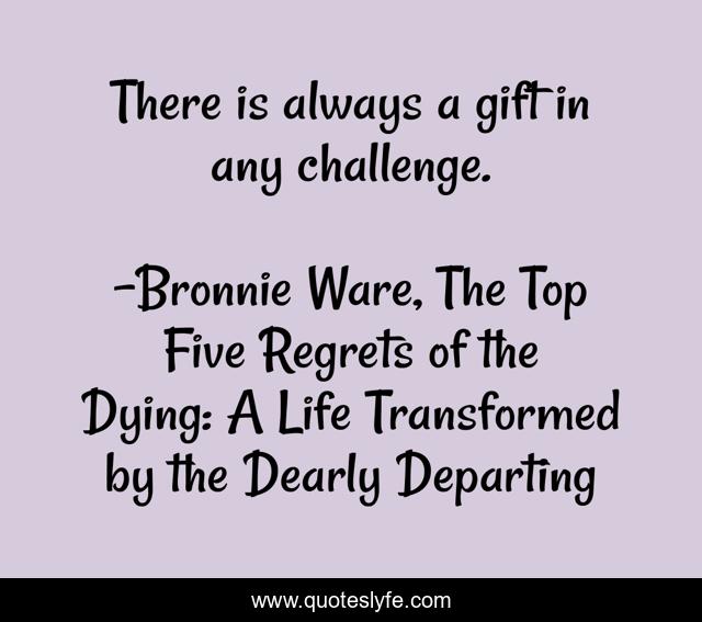 "Bronnie Ware, The Top Five Regrets of the Dying: A Life Transformed by the Dearly Departing Quotes." Quoteslyfe.com, 2025. Fri. 05 Dec. 2025. <https://www.quoteslyfe.com/quote/There-is-always-a-gift-in-any-216025>.