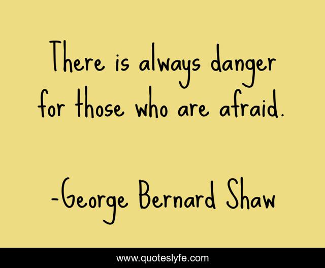 This page presents the quote "There is always danger for those who are afraid.". Author of this quote is George Bernard Shaw. This quote is about fear, danger,.