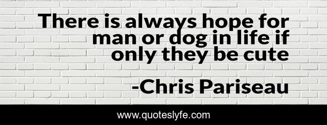 This page presents the quote "There is always hope for man or dog in life if only they be cute". Author of this quote is Chris Pariseau. This quote is about relationships, love, men, men-and-dogs, dogs, affection,.