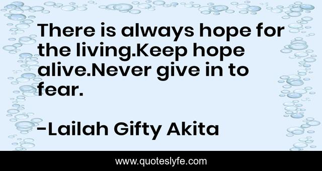 This page presents the quote "There is always hope for the living.Keep hope alive.Never give in to fear.". Author of this quote is Lailah Gifty Akita. This quote is about living, hopeful-heart, hopeful, living-life, hopeful-and-encouraging, never-give-up,.