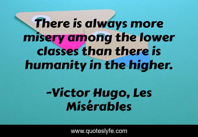 This page presents the quote "There is always more misery among the lower classes than there is humanity in the higher.". Author of this quote is Victor Hugo, Les Misérables. This quote is about poverty, humanity, misery,.