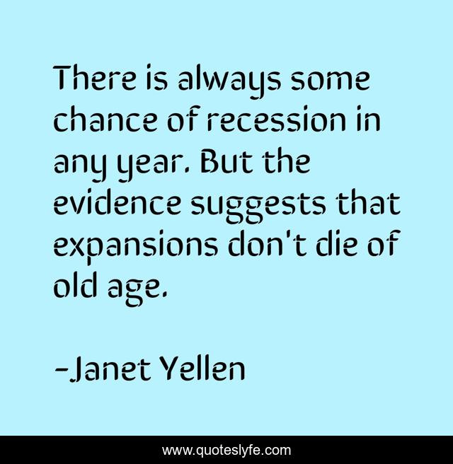 This page presents the quote "There is always some chance of recession in any year. But the evidence suggests that expansions don't die of old age.". Author of this quote is Janet Yellen. This quote is about die, age, old age,.