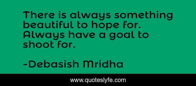This page presents the quote "There is always something beautiful to hope for. Always have a goal to shoot for.". Author of this quote is Debasish Mridha. This quote is about life, love, knowledge, inspirational, intelligence, philosophy, wisdom, quotes, affection,.