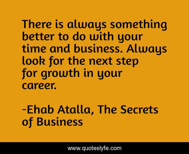 This page presents the quote "There is always something better to do with your time and business. Always look for the next step for growth in your career.". Author of this quote is Ehab Atalla, The Secrets of Business. This quote is about skills, business, entrepreneurship,.