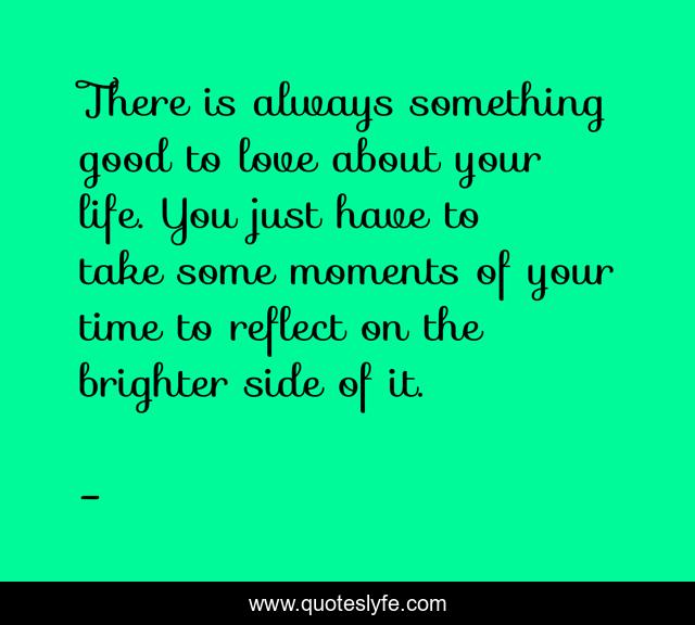 This page presents the quote "There is always something good to love about your life. You just have to take some moments of your time to reflect on the brighter side of it.". Author of this quote is . This quote is about edmond-mbiaka, reflecting-on-yourself,.