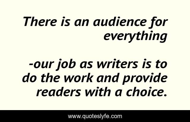 This page presents the quote "There is an audience for everything". Author of this quote is our job as writers is to do the work and provide readers with a choice.. .