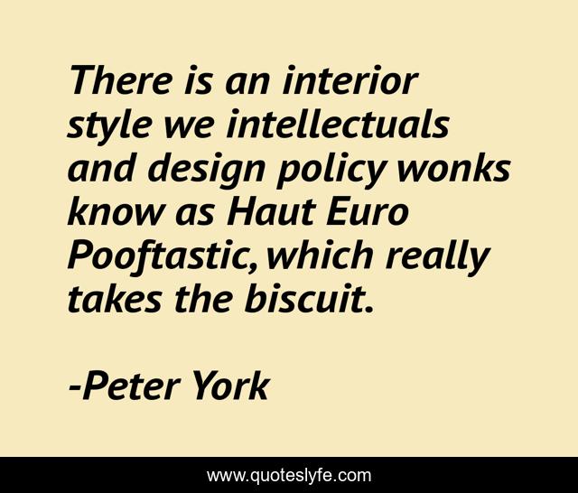 This page presents the quote "There is an interior style we intellectuals and design policy wonks know as Haut Euro Pooftastic, which really takes the biscuit.". Author of this quote is Peter York. This quote is about interior, style,.