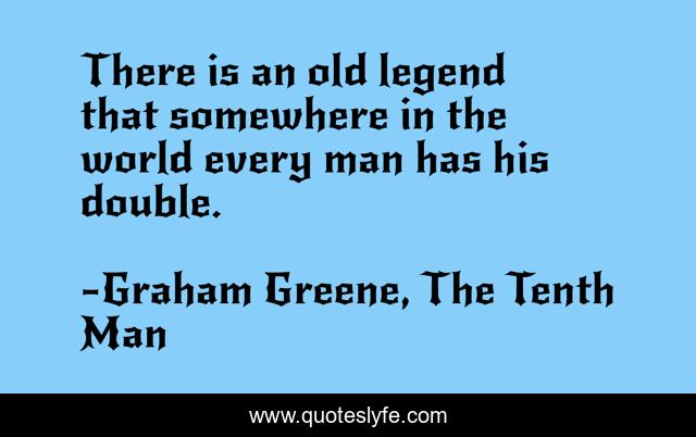 This page presents the quote "There is an old legend that somewhere in the world every man has his double.". Author of this quote is Graham Greene, The Tenth Man. This quote is about life, human,.