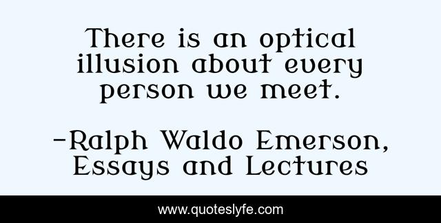This page presents the quote "There is an optical illusion about every person we meet.". Author of this quote is Ralph Waldo Emerson, Essays and Lectures. This quote is about perception, illusion,.